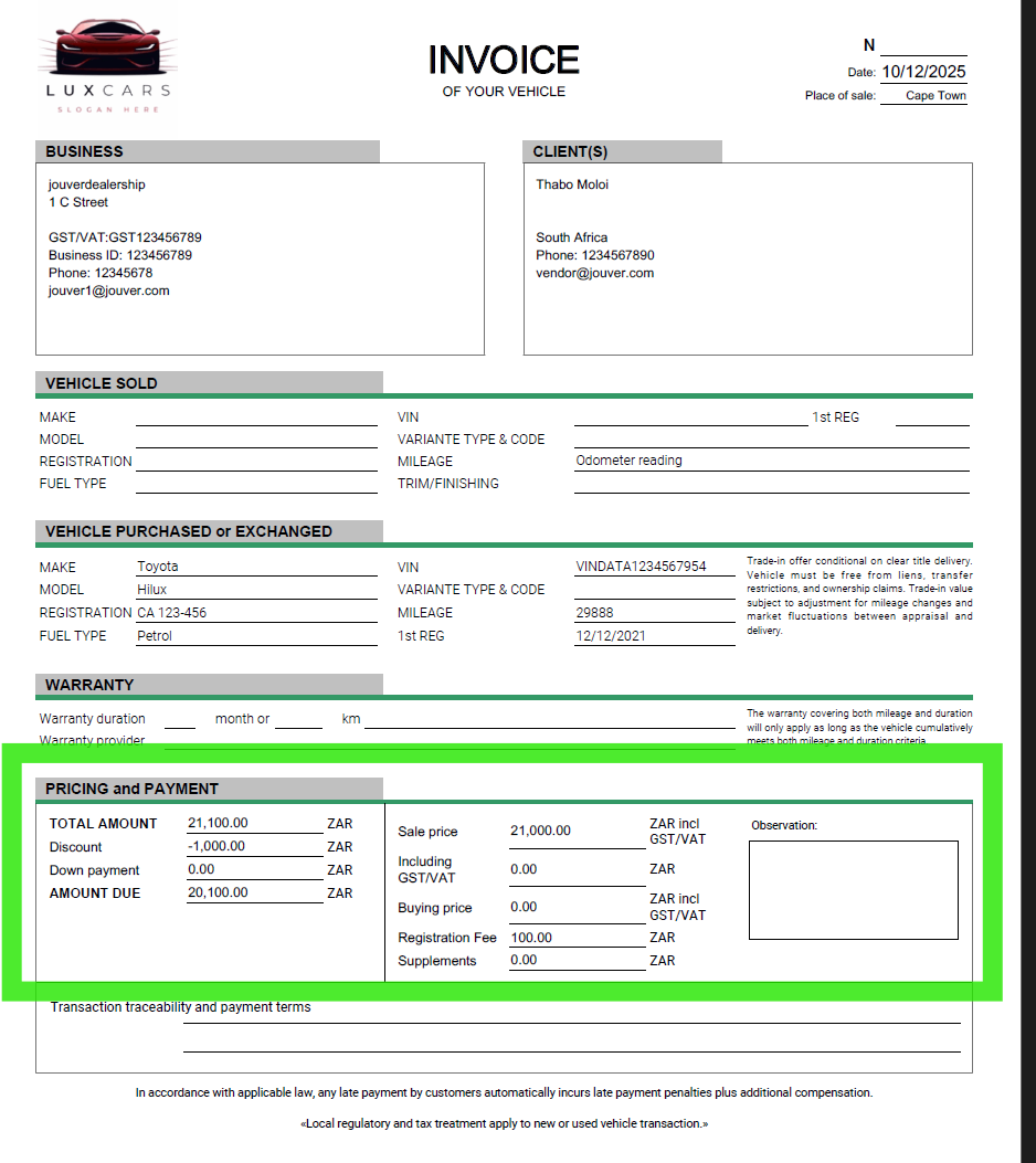 Discounting is flexible and intuitive in Jouver, designed to handle various discount types commonly used in vehicle saless.