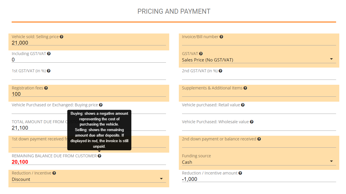 Where to Find the Discount Field: As you create transaction, and if you are selling a vehicle, you'll see a "Discount" dropdown menu. This dedicated field is specifically designed to track all types of price reductions and incentives with proper categorization.