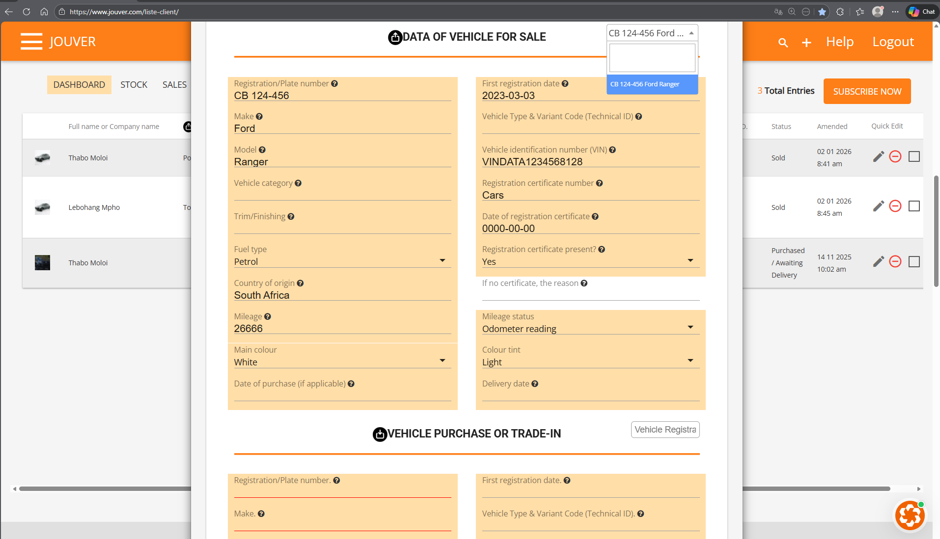 - The trade-in vehicle is automatically added to Stock