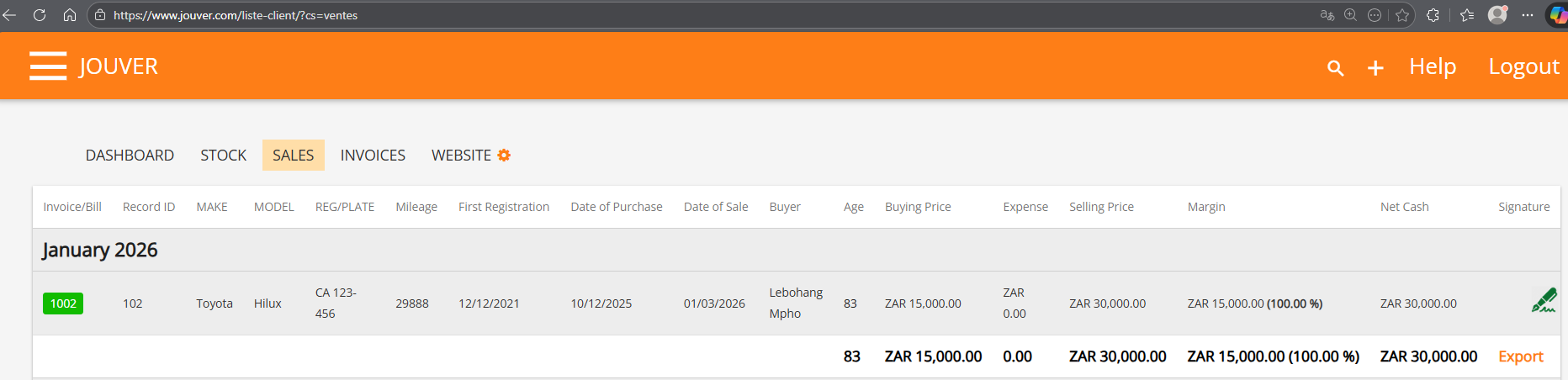 The margin data is included when you export sales reports, allowing you to analyze profitability trends, identify which vehicle types or price ranges generate the best margins, and make data-driven decisions about what to stock.