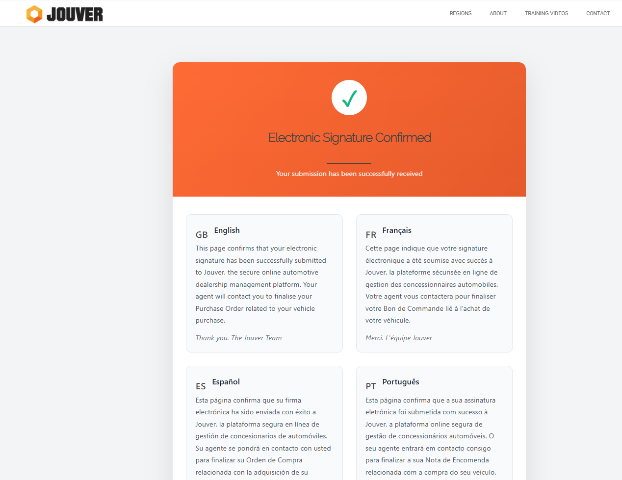What Happens After Signing: The moment the customer clicks "I sign," Jouver's automated document system activates:
